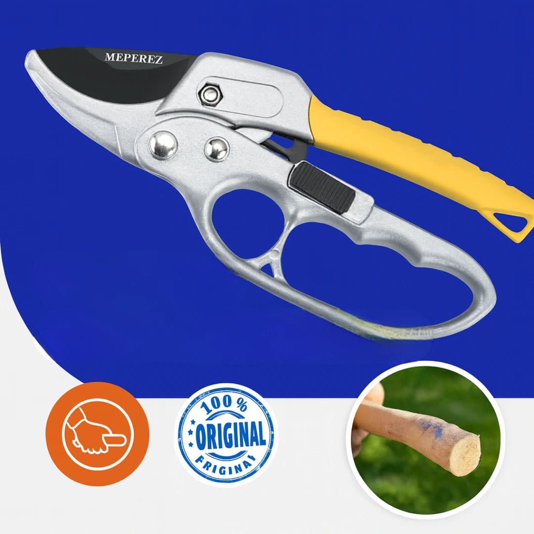 El mecanismo de trinquete de nuestras tijeras multiplica tu presión con cada apretón, facilitando el corte de ramas secas o gruesas sin dañar tus manos. Ideal para quienes desean mantener su jardín impecable sin agotar su energía.