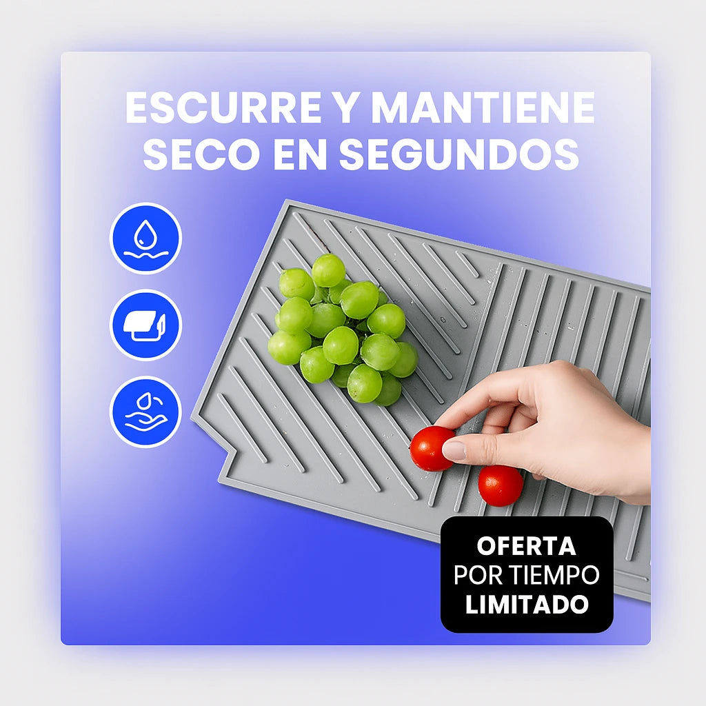 ¿Escurridor, salvamanteles o base antideslizante? Este tapete lo hace todo. Resiste temperaturas extremas, es suave con tus utensilios y se adapta a múltiples tareas. Ahorra espacio, dinero y esfuerzo con un solo accesorio multifuncional.