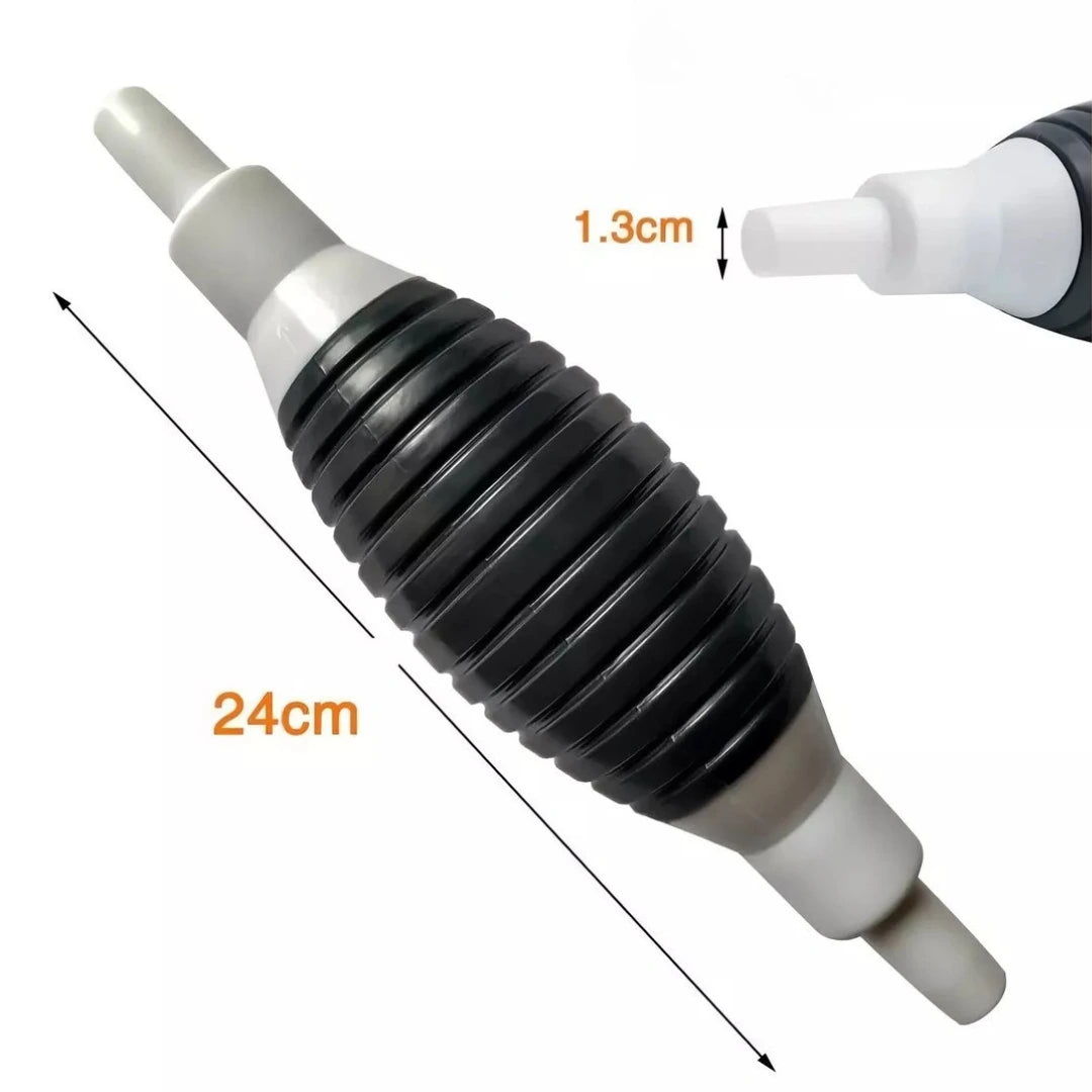 Con su diseño liviano y portátil, la Bomba de Succión Manual te permite transferir líquidos sin esfuerzo, ya sea en tu hogar, taller o al aire libre. Es ideal para vehículos sin filtro antirrobo, como cortadoras de césped y generadores.