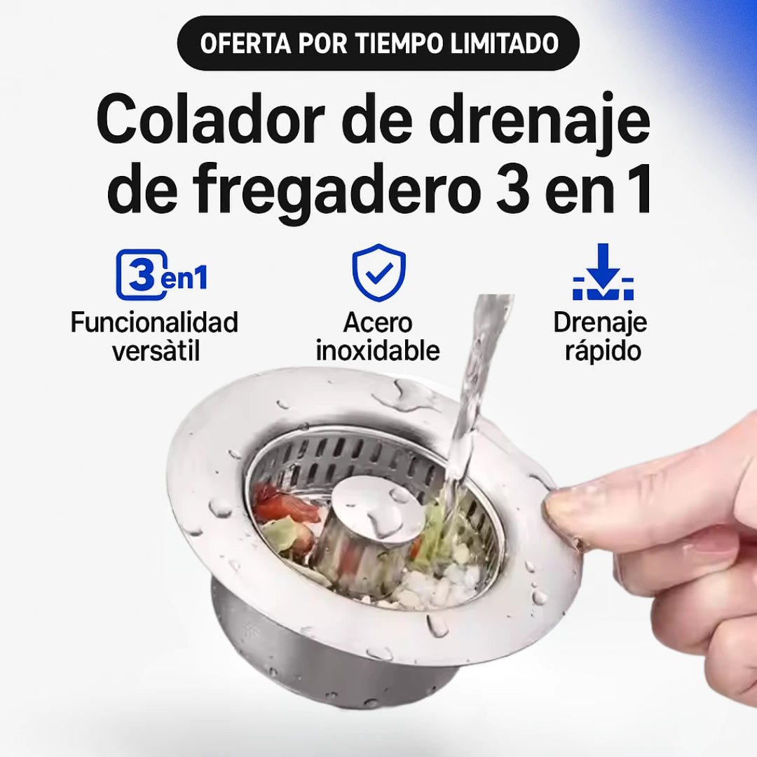 Funciones: Tapón, colador de residuos y drenaje rápido