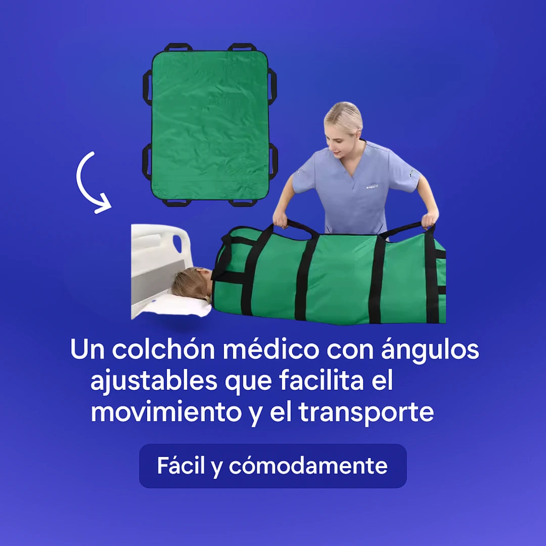Descubre cómo esta almohadilla de transferencia con asas estratégicas reduce el esfuerzo físico al mínimo. Mejora la seguridad y comodidad del paciente sin lastimarte la espalda ni depender de ayuda adicional.