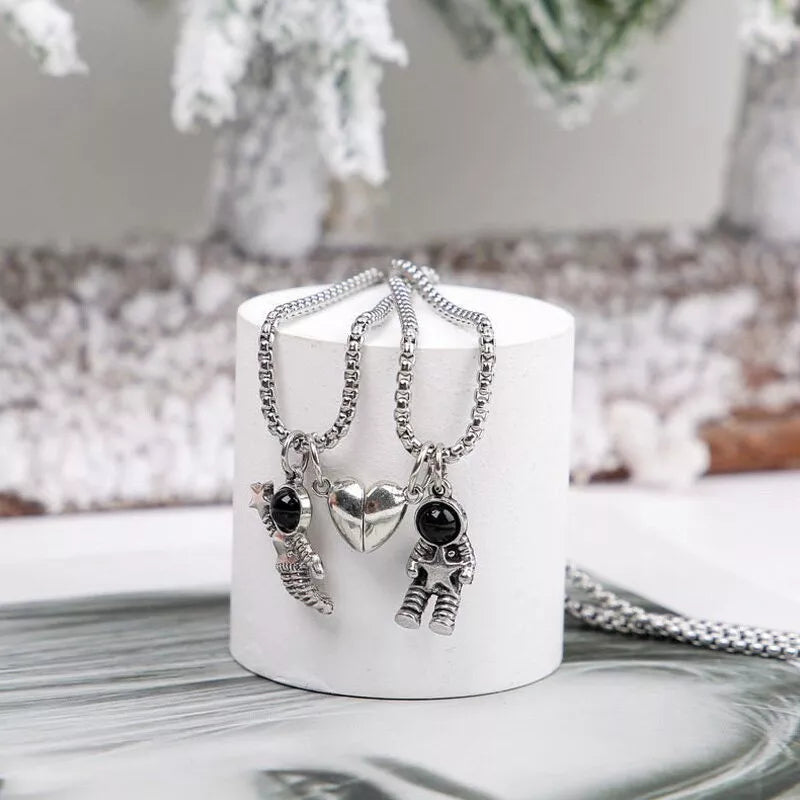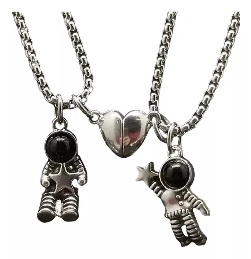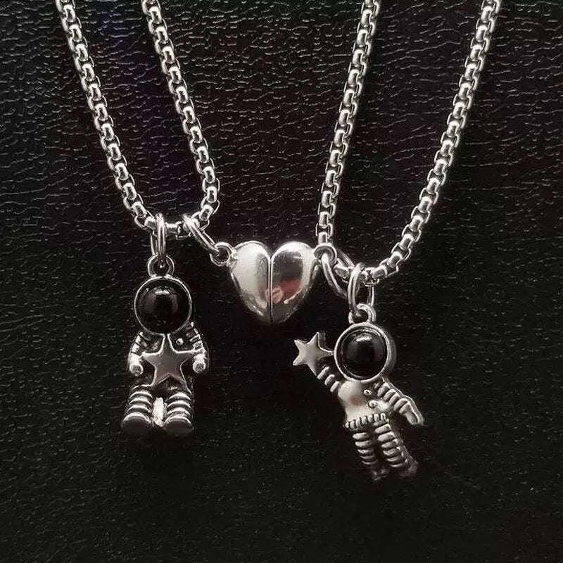 Este collar no es solo una joya; es un símbolo de amor eterno y unión. Dos astronautas, separados por la distancia pero unidos por un imán, representan la fuerza del amor que supera cualquier obstáculo.