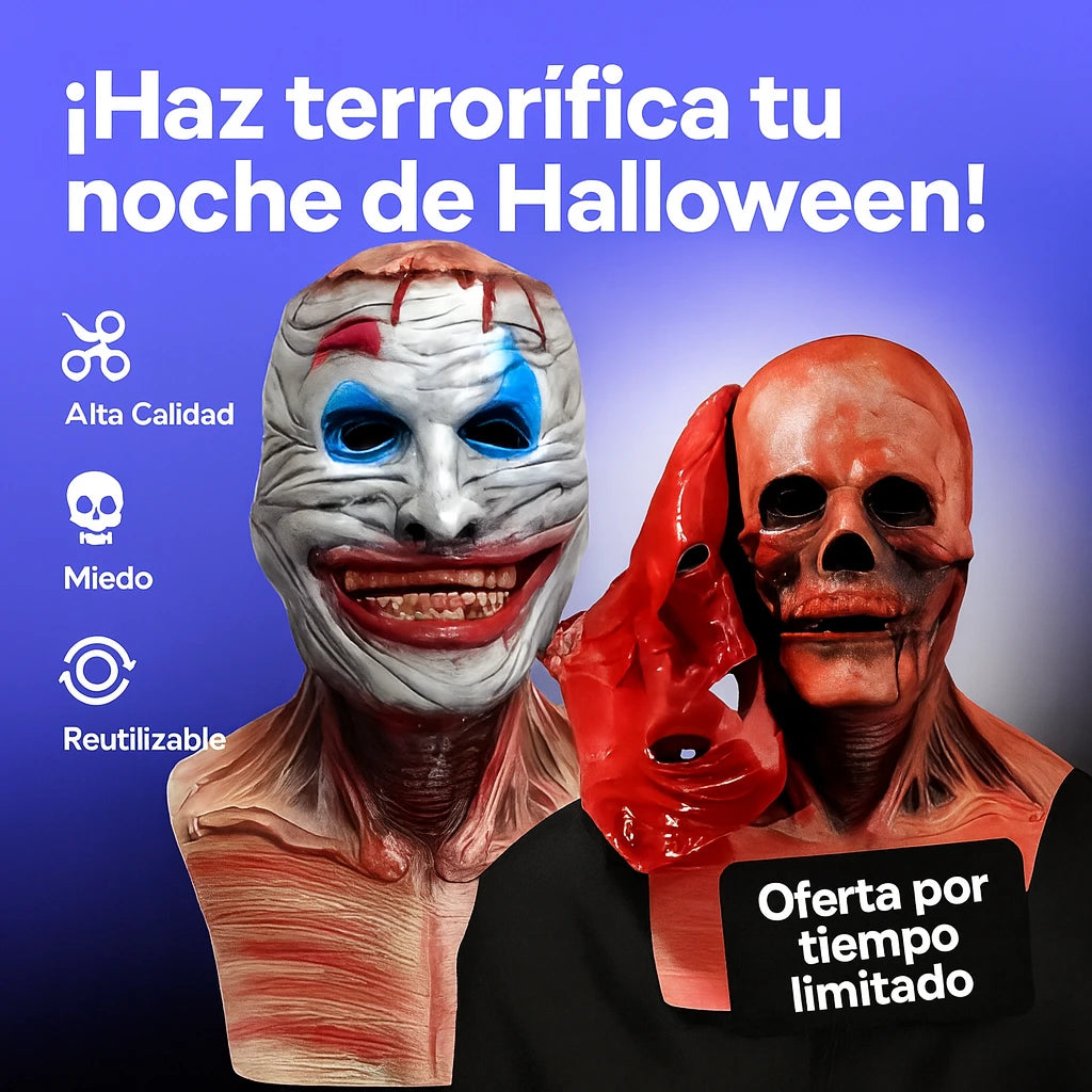 No es una máscara cualquiera: es una obra de terror. Cada detalle ha sido esculpido para simular una calavera viva, con arrugas, grietas y textura que engañan a cualquier mirada. Úsala con luces tenues o en exteriores: el efecto siempre es impactante.